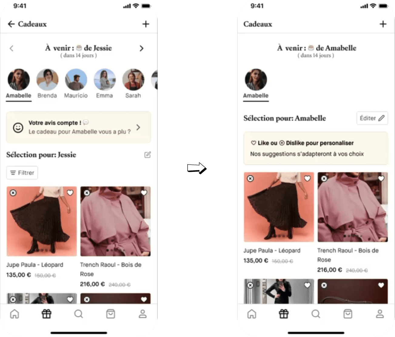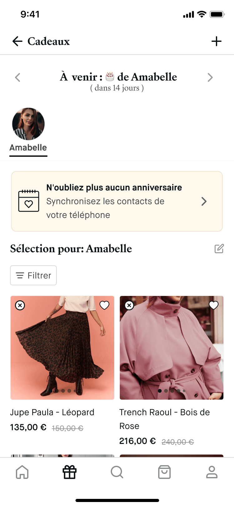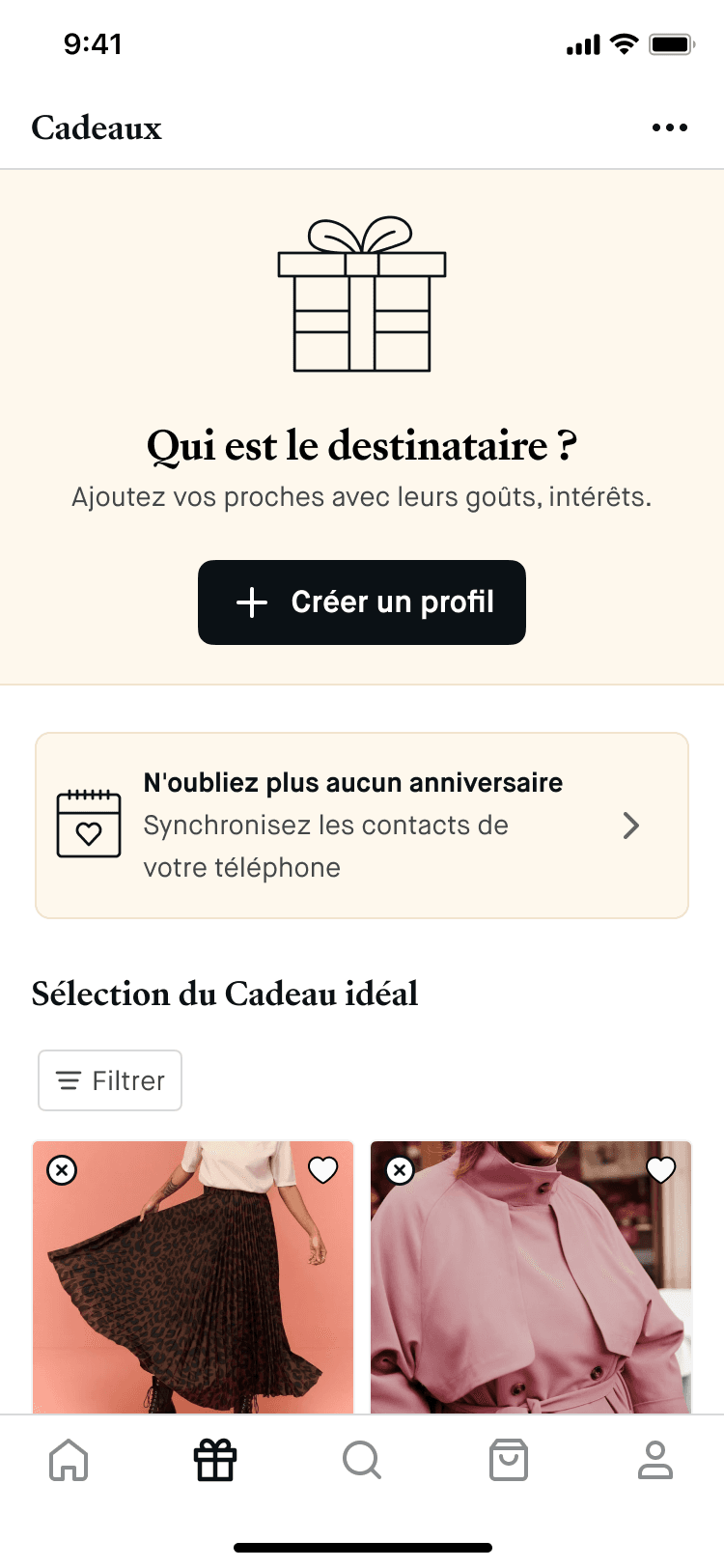 “J’aimerai accéder aux filtres pour filtrer directement les cadeaux.”